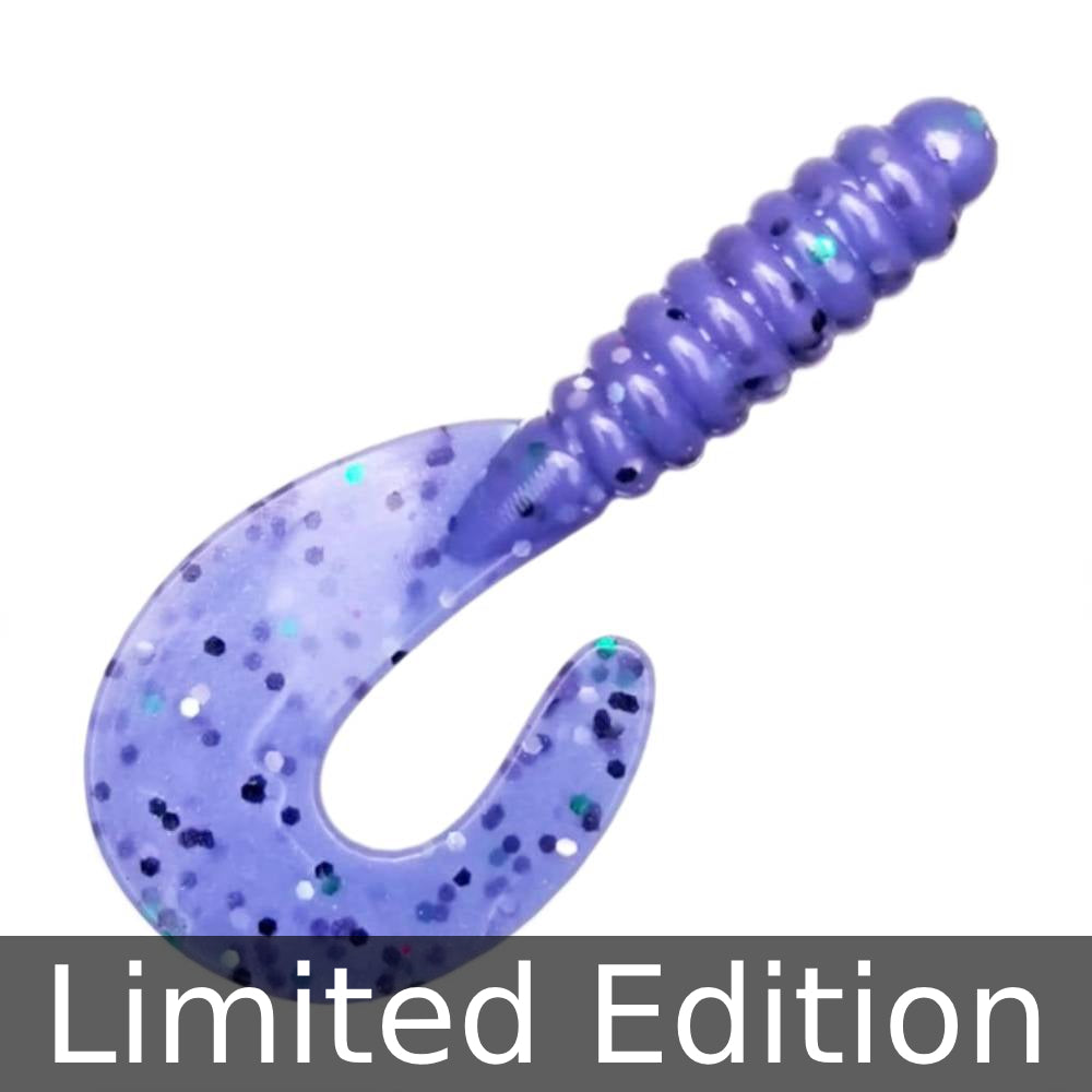 Turn heads underwater with the Violet Vortex Curly Tail Grub. Its vibrant lavender body and multi-color glitter flakes create a dazzling flash that triggers aggressive strikes. The ribbed design and curly tail deliver irresistible motion, perfect for enticing bass, walleye, trout, and panfish. A must-have for any angler's tackle box.